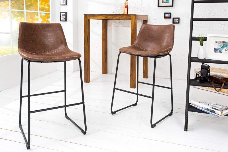 Vkusná barová stolička s nízkym operadlom a čalúneným sedákom z hnedého mikrovlákna skvelo zapadne do industriálneho alebo vidieckeho štýlu. Táto stolička vhodne doplní váš barový stôl a prispeje k celkovému vzhľadu vášho interiéru. Hnedý sedák je detailne prešitý svetlou niťou. Železná podnož zo štyroch úzkych vysokých nôh je v čiernej farbe. V strede sú nohy prepojené pre lepšiu stabilitu. Táto stolička je dizajnovo zhotovená tak, aby sa stala štýlovým doplnkom k vášmu baru.